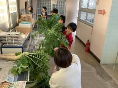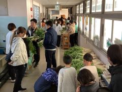 昼放課にのぞみ市場が開かれ、先生たちで大賑わいでした。のぞみ学級の児童は、呼び込み、案内、包装、会計などの役割を一生懸命に行いました。先日収穫したさつまいももあわせて販売しました。