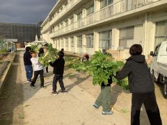 のぞみ学級が育てた大根を収穫しました。今年も立派な大根が多く全部で150本を超えました。収穫した後は、みんなで協力して運んで販売の準備です。