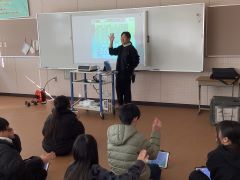 新美南吉さんについてお話しになりました。南吉さんの物語には、弱いものや小さいものの気持ちや思いに寄り添っているといった内容でした。児童にも、他人の気持ちを考え寄り添えるよう呼びかけていました。
